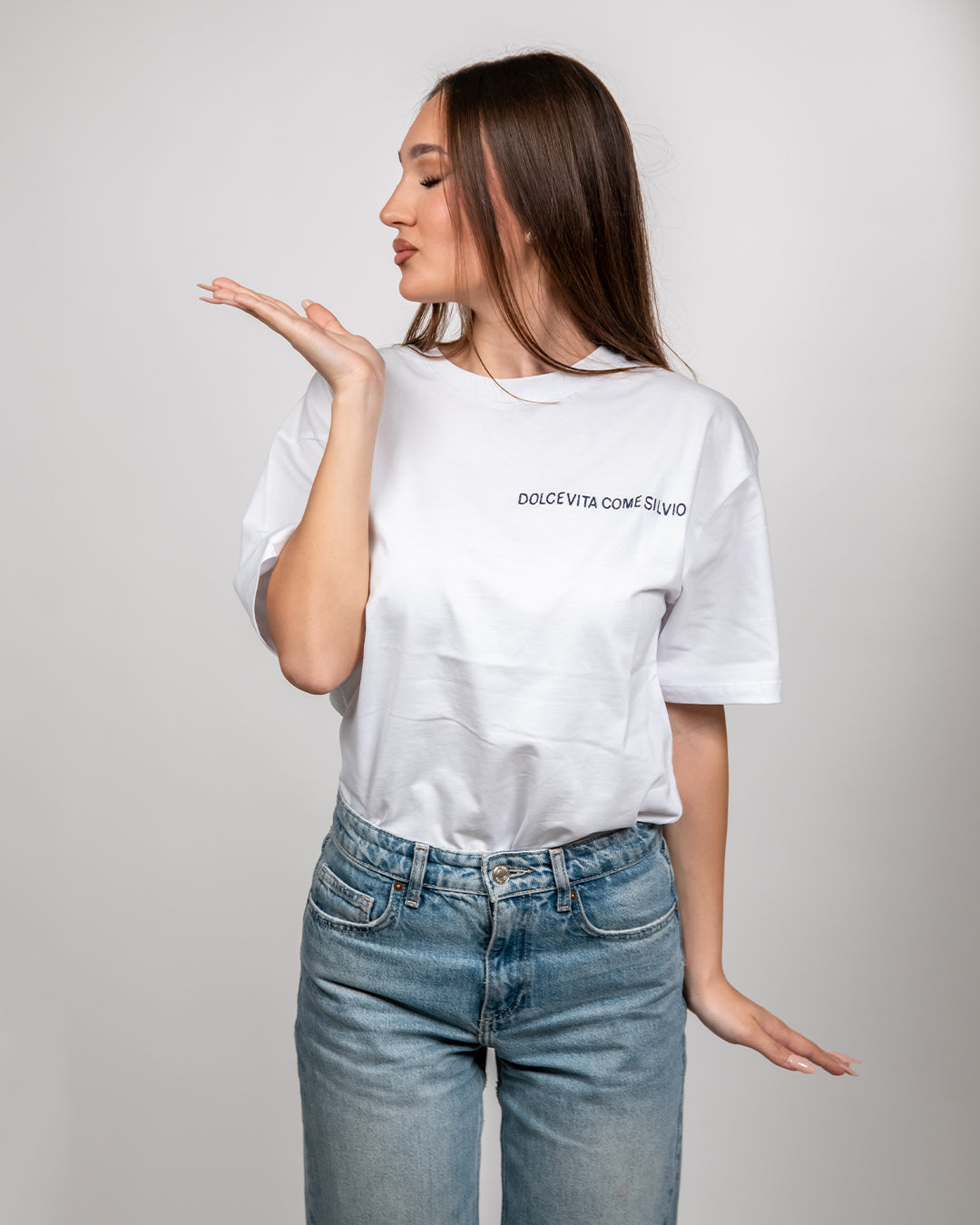 - Ricamo con frase iconica sul petto