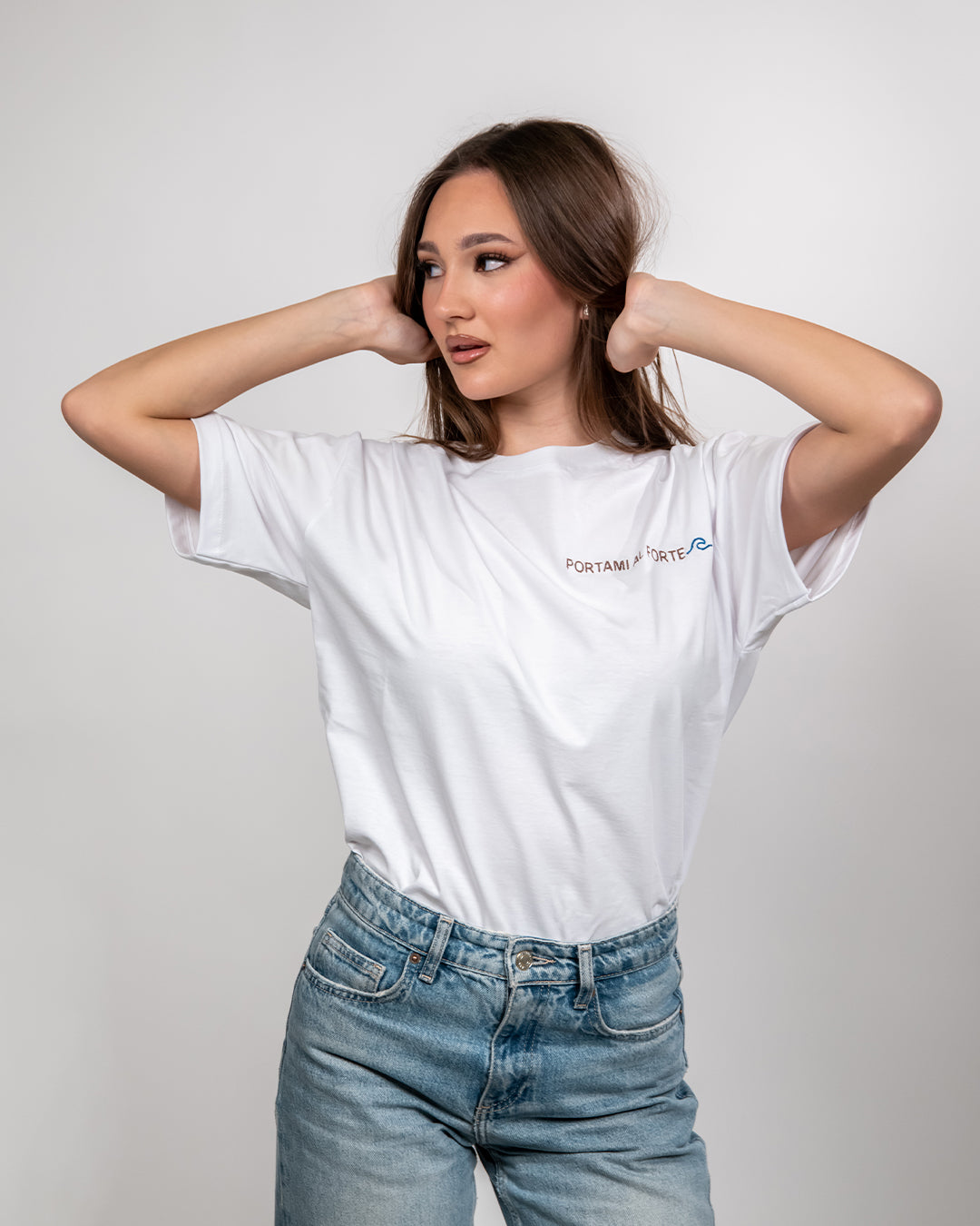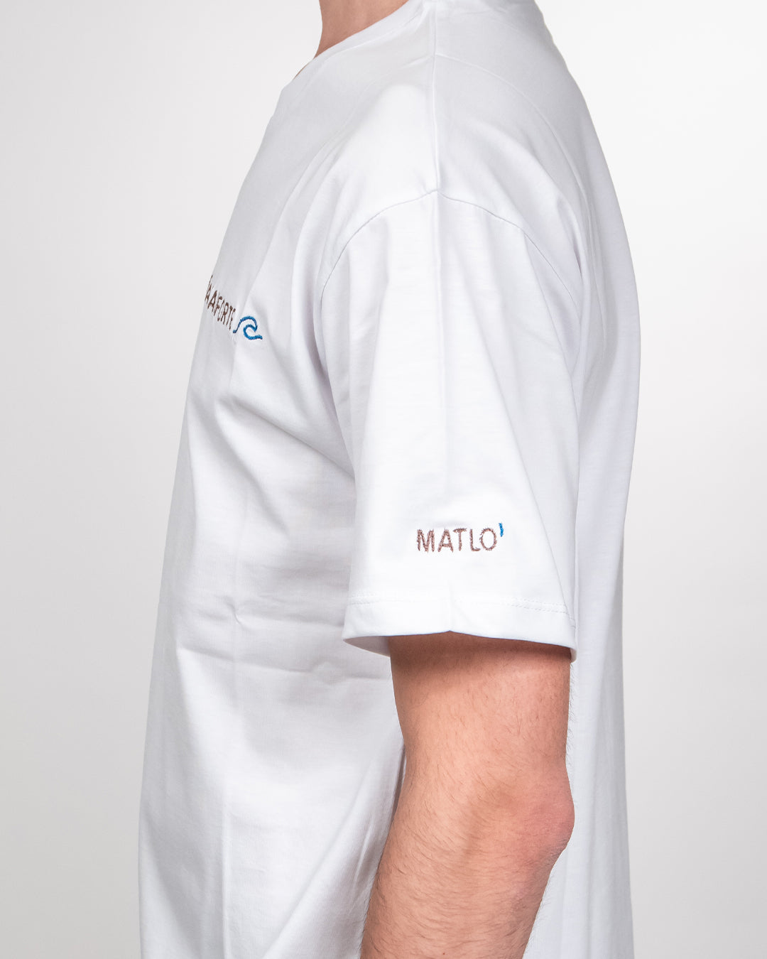 Tra le boutique eleganti, le biciclette che sfrecciano sul lungomare e gli aperitivi al tramonto, questa t-shirt cattura l’essenza di un’estate italiana raffinata e senza tempo. Il ricamo marrone cioccolato, con l'onda blu Matló, richiama le sfumature del mare e della sabbia al crepuscolo.